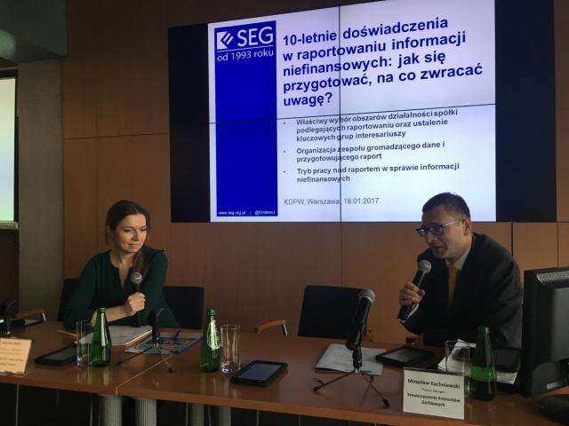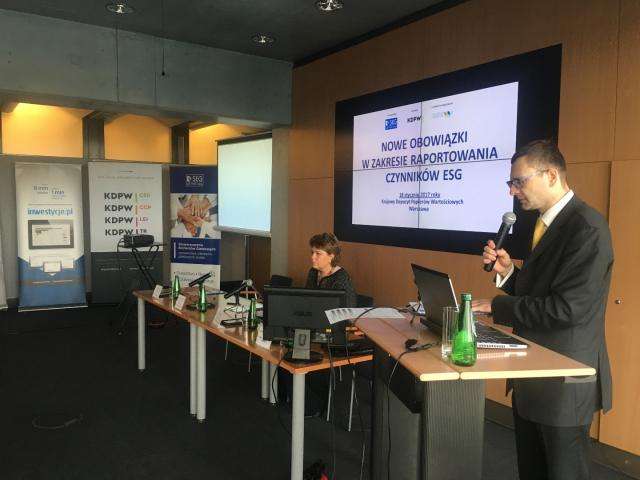 Stowarzyszenie Emitentów Giełdowych miało przyjemność zaprosić na konferencję "Nowe obowiązki w zakresie raportowania czynników ESG", która odbyła się 18 stycznia 2017 roku w sali KDPW, VI piętro - wejście windy C (ul. Książęca 4, Warszawa). Partnerem spotkania był Krajowy Depozyt Papierów Wartościowych, natomiast Partnerem Technologicznym Unicomp-WZA.