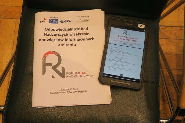 Stowarzyszenie Emitentów Giełdowych, Giełda Papierów Wartościowych w Warszawie oraz PwC mieli przyjemność zaprosić na kolejne, 26. już spotkanie z cyklu Forum Rad Nadzorczych pt. "Odpowiedzialność Rad Nadzorczych w zakresie obowiązków informacyjnych emitenta", które odbyła się 19 września 2018 roku w Sali Notowań warszawskiej GPW (ul. Książęca 4, II piętro). Partnerem Technologicznym wydarzenia jest Unicomp-WZA.