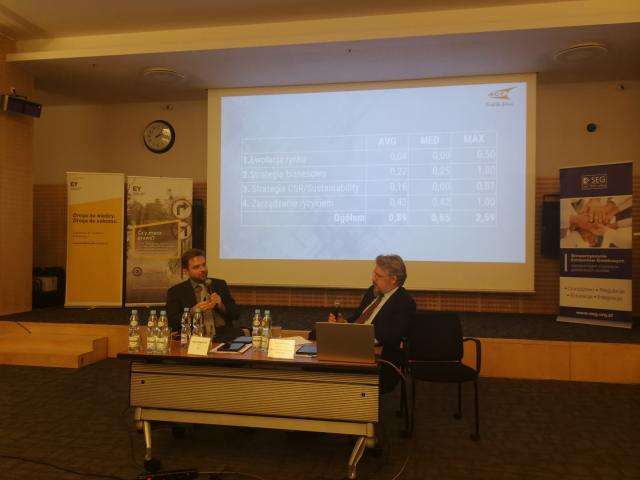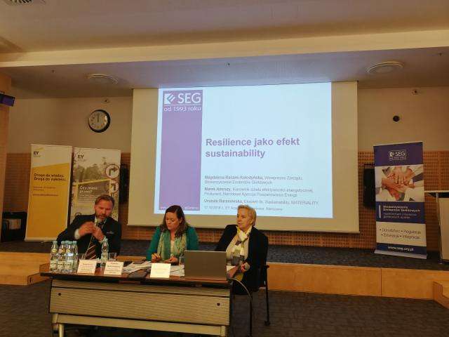W drugiej części spotkania przedstawiliśmy perspektywę strategiczną modelu biznesowego (ocena strategii zaprezentowanych w raportach; stopień dostosowania strategii do warunków rozwoju; jak zwięźle i zrozumiale opisać w raporcie, że spółka wie, po co istnieje i dokąd zmierza?) oraz resilience jako efekt sustainability (główne kategorie ryzyk wpływających na działalność operacyjną spółki i perspektywy jej funkcjonowania; regulacyjne i finansowe ryzyka niskiej efektywności energetycznej; kluczowe obszary niezbędnych zmian, sposoby zwiększenia resilience oraz metody ich finansowania). Na zakończenie prelegenci dokonali weryfikacji raportów niefinansowych (zakres i metody weryfikacji raportu niefinansowego; wewnętrzne (dla spółki) i zewnętrzne (dla interesariuszy) korzyści z weryfikacji raportu niefinansowego; wpływ wiarygodnych danych na wzrost resilience spółki).