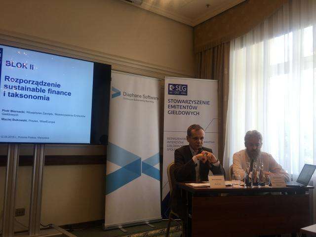 Stowarzyszenie Emitentów Giełdowych miało przyjemność zaprosić na konferencję "Zrównoważone finansowanie i raportowanie", która odbyła się 12 czerwca 2019 roku w Sali Chicago (piętro 1) hotelu Polonia Palace (Al. Jerozolimskie 45, Warszawa). Partnerem wydarzenia był Diaphane Software.
